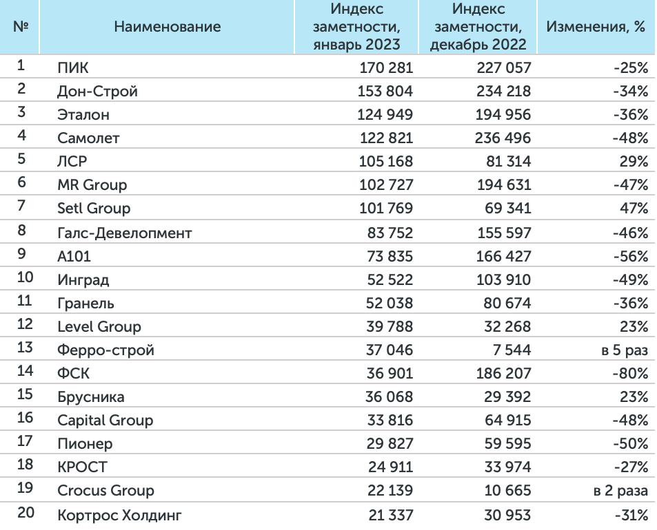 – Первое место традиционно сохраняет компания ПИК.